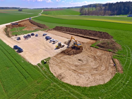 Die erste der drei Kranstellflächen ist bereits größtenteils fertiggestellt. Die Arbeiten liegen damit im Zeitplan, sodass im Juni mit den Fundamentarbeiten begonnen werden kann.