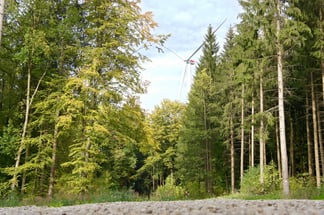 Mit diesen Abholzungsmaßnahmen wurde am Freitag begonnen. Zum Einsatz kommen verschiedene Harvester je nach Höhe des Baumbewuchses. Die Abholzung kann voraussichtlich nächste oder übernächste Woche abgeschlossen werden.