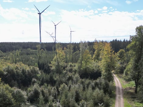 Das Windrad liegt nordwestlich der bestehenden drei Anlagen im Wald.